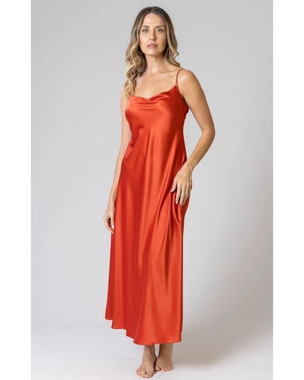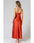 Este vestido longo na cor terra combina elegância e estilo. As alças finas proporcionam um toque delicado, enquanto o tecido garante caimento perfeito. Ideal para eventos formais ou festas, esse vestido é uma peça indispensável no seu guarda-roupa.
